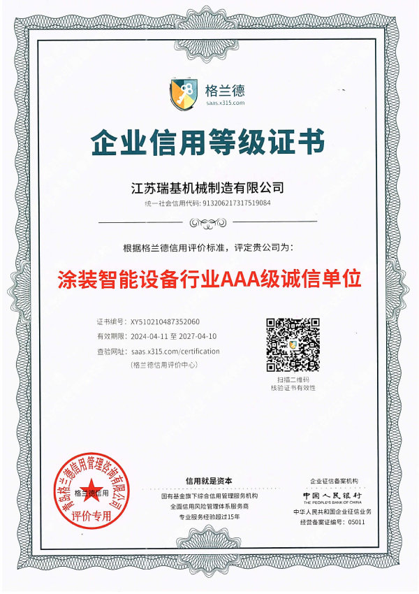 江蘇瑞基機械制造有限公司(簡稱瑞基機械)是專業從事電泳涂裝、油漆涂裝、粉末涂裝、環保治理等涂裝流水線及涂裝產品設計、制造、安裝、調試、技術指導等交鑰匙服務的工程或協作加工的承包公司。公司生產銷售的設備包括:前處理設備、前處理生產線、噴涂設備、電泳設備、靜電噴粉設備、水簾噴漆室、干式噴漆室等。